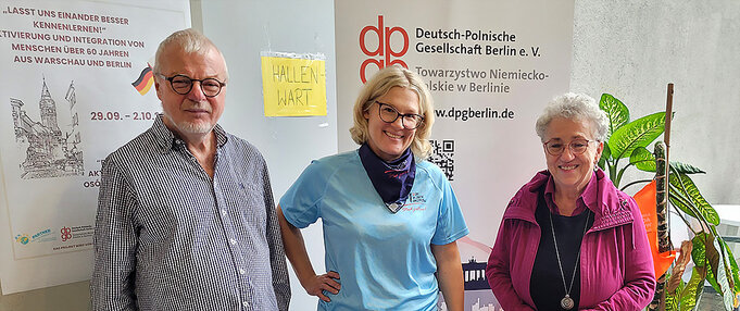 Zum ersten Mal war die Olympiade in diesem Jahr echt international. Mit finanzieller Unterstützung der Stiftung für deutsch-polnische Zusammenarbeit waren aus unserer polnischen Partnerstadt, dem Warschauer Stadtbezirk Mokotów (vgl. Broschüre #49), zwölf Gäste angereist, zwei Betreuer*innen und zehn sportliche Senior*innen, die alle das richtige Alter und die nötige Fitness mitbrachten. Und so gesellte sich zu den Flaggen von Treptow-Köpenick und Cajamarca auch die von Warschau dazu.